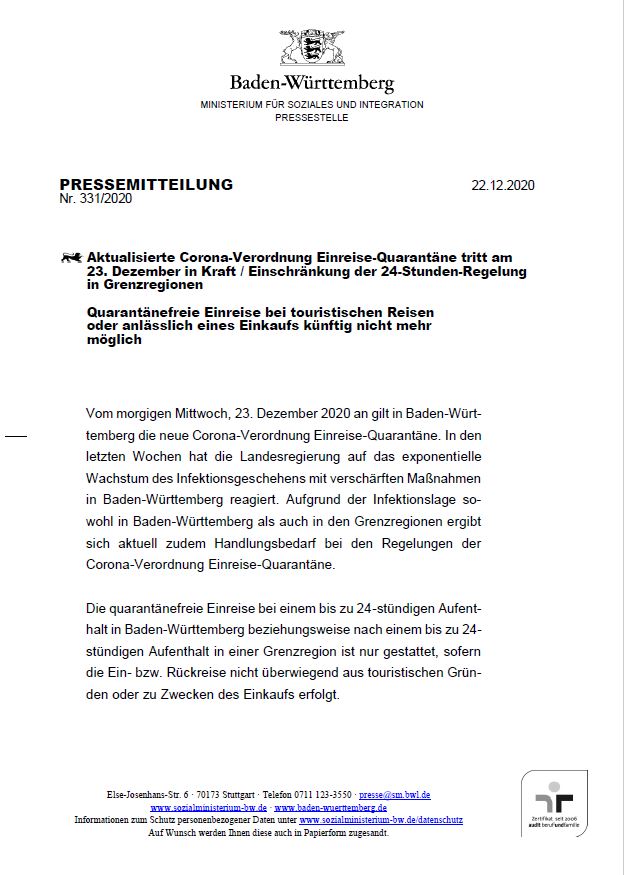 Denn deutschland hat seine regeln für die einreise aus einem risikogebiet entsprechend angepasst. Einreisende nach voraufenthalt in risikogebieten sind grundsätzlich verpflichtet, sich unverzüglich nach der einreise auf direktem weg zu ihrem wohnort oder in eine andere geeignete unterkunft (z.b. Einreise schweiz deutschland corona 24 stunden. Schweizer, die einen impfschutz haben, können in deutschland ohne triftigen grund einreisen und einkaufen gehen, ohne dass dies zeitlich begrenzt ist. Diese regel gilt aber nur für 24 stunden.